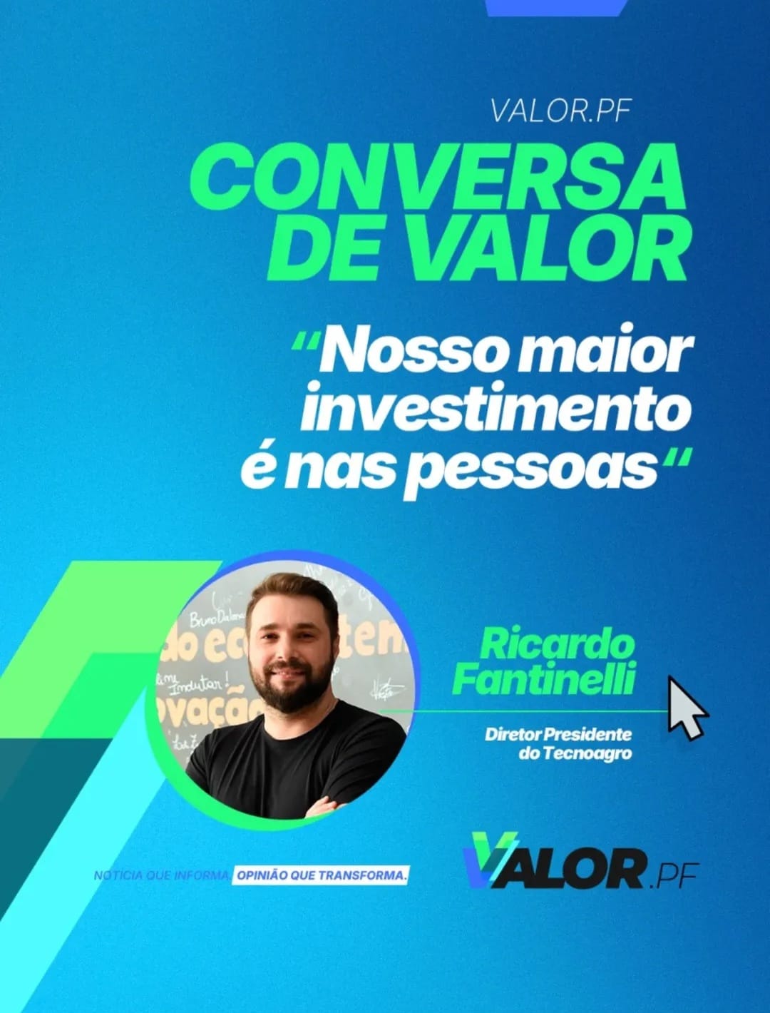 O Diretor-Presidente do Tecnoagro concedeu uma importante entrevista ao portal ValorPF, detalhando a visão estratégica e os pilares de crescimento e inovação da organização. Sob o título “O nosso maior investimento é nas pessoas”, a matéria ressalta o foco do Tecnoagro no desenvolvimento humano e na construção de um ecossistema de alta competitividade.
